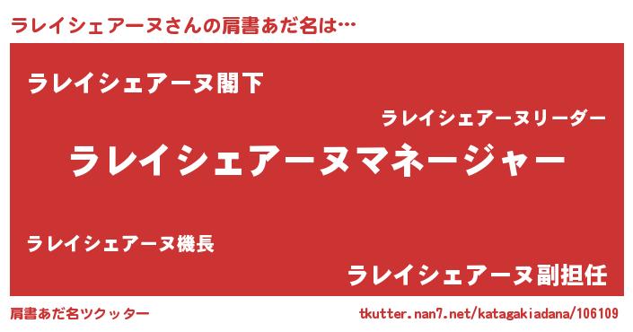 | 意味不明あだ名 | 『自称ラレイシェアーヌ』 |