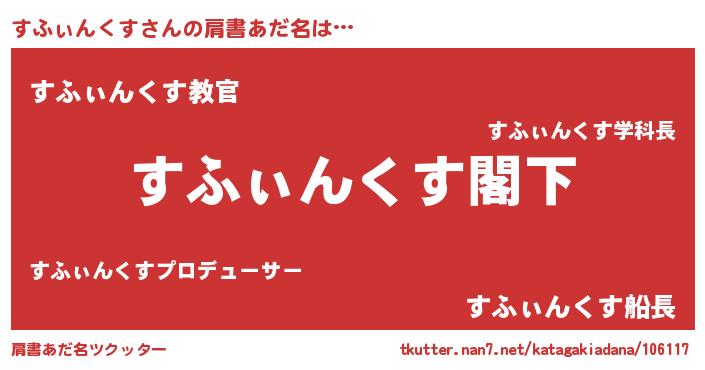 | 意味不明あだ名 | 『自称すふぃんくす』 |