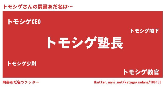 | 男性向けラノベタイトル風あだ名 | 『ダンジョンにトモシゲを求めるのは間違っているだろうか』 |