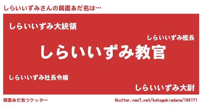 | 男性向けラノベタイトル風あだ名 | 『この素晴らしい世界にしらいいずみを!』 |