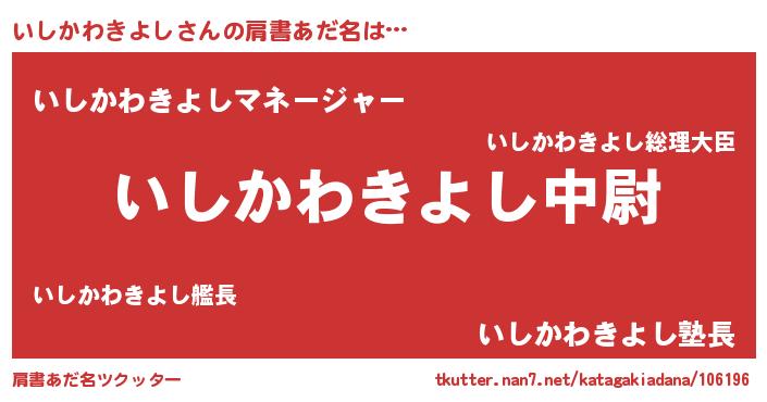 | 男性向けラノベタイトル風あだ名 | 『転生したらいしかわきよしだった件』 |