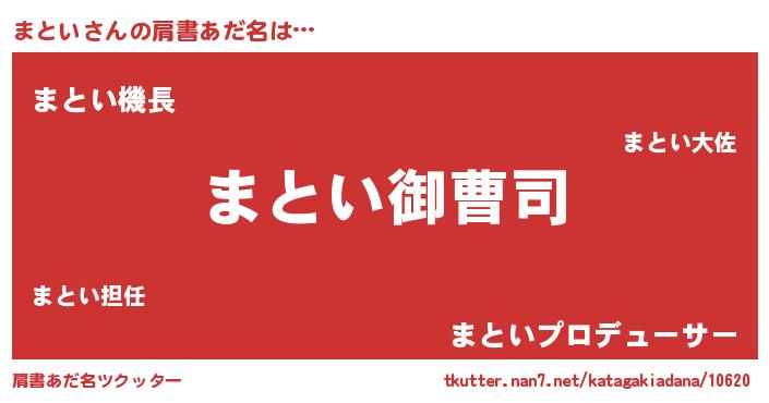 | 男性向けラノベタイトル風あだ名 | 『まといの憂鬱』『緋弾のマトイ』 |