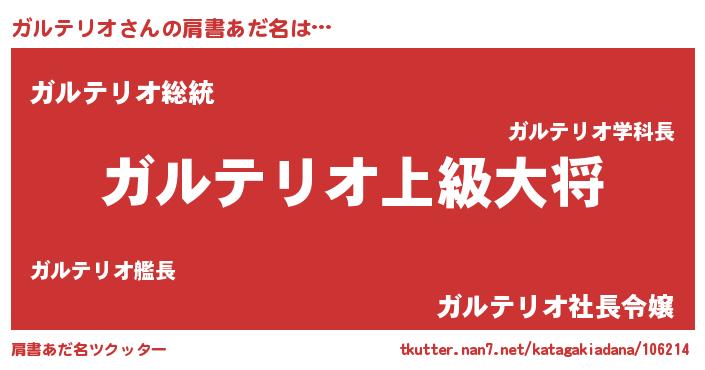 | 男性向けラノベタイトル風あだ名 | 『転生したらガルテリオだった件』 |
