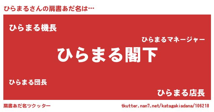 | 男性向けラノベタイトル風あだ名 | 『Re:ひらまるから始める異世界生活』 |