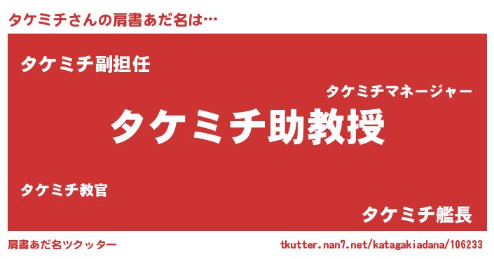 | ファンタジー風あだ名 | 『クインタット』『タケディッシュ』 |