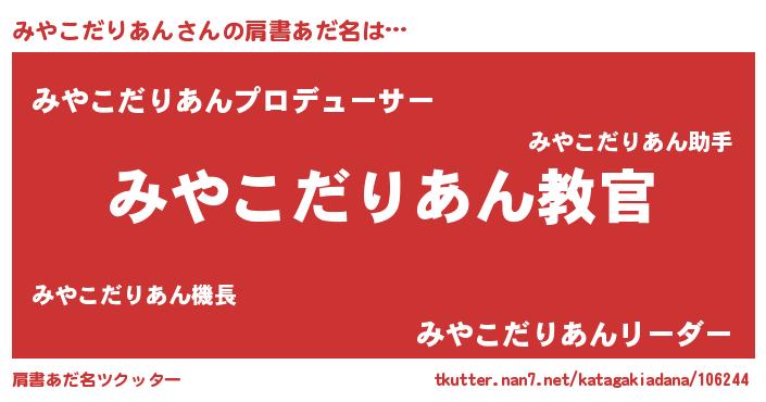 | 男性向けラノベタイトル風あだ名 | 『この素晴らしい世界にみやこだりあんを!』 |