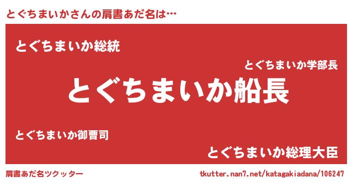 | 意味不明あだ名 | 『自称とぐちまいか』 |