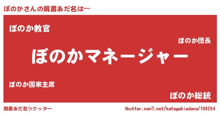 | 欧米人風あだ名 | 『アンジェラ・ぼのか』『ウサインぼのか』 |