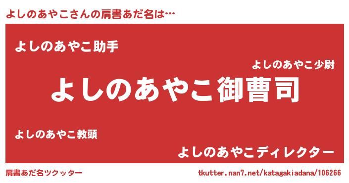 | 男性向けラノベタイトル風あだ名 | 『ヨシノアヤコアートオンライン』 |