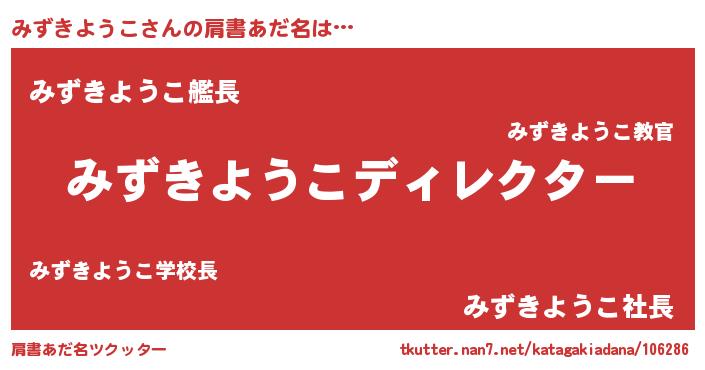 | ヘコむあだ名 | 『みずもー』『みずっぺ』『酢こんぶ』 |