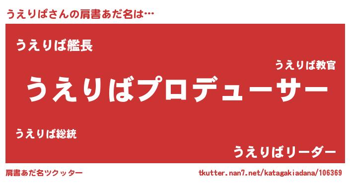 | 男性向けラノベタイトル風あだ名 | 『うえりばに滅ぼされるだけの簡単なお仕事です』 |