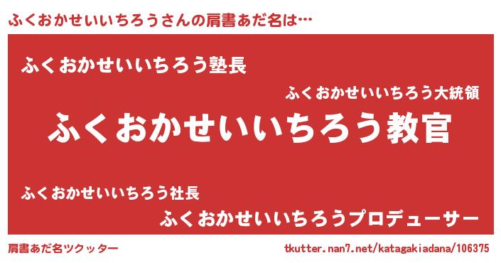 | 男性向けラノベタイトル風あだ名 | 『この素晴らしい世界にふくおかせいいちろうを!』 |