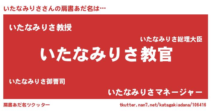 | ヒーロー風カッコイイあだ名 | 『仮面イタダー』『スーパーイタナミリサ』 |