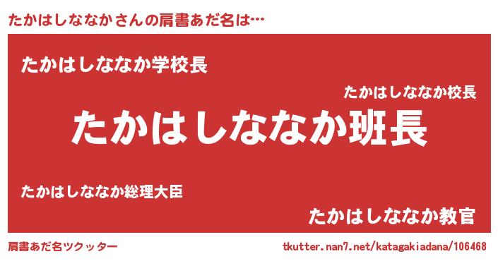 | ヘコむあだ名 | 『たか太郎』『たかはしななか(苦笑)』 |