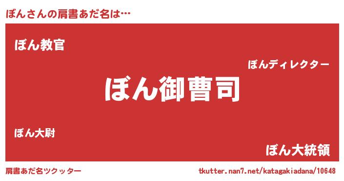 | 男性向けラノベタイトル風あだ名 | 『ぼんの憂鬱』『はたらくぼんさま!』 |