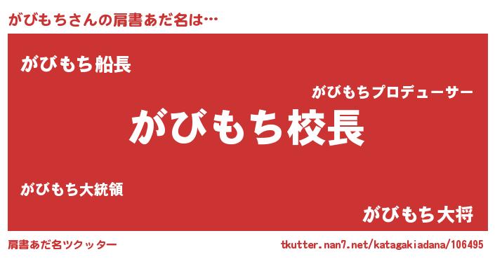 | ヒーロー風カッコイイあだ名 | 『ネオガビモチ』『ウルトラがびもちマン』 |