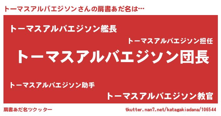 | 欧米人風あだ名 | 『ウサイントーマスアルバエジソン』 |