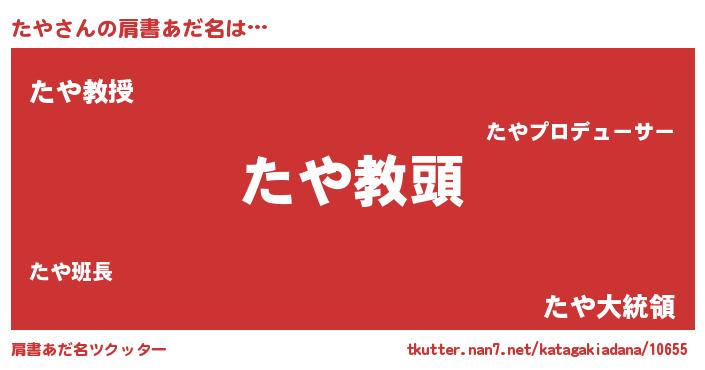 | ヒーロー風カッコイイあだ名 | 『ネオタヤ』『友情の使者たや』 |