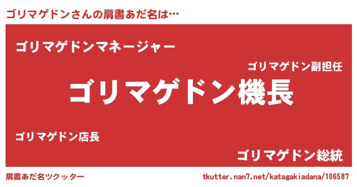 | 意味不明あだ名 | 『自称ゴリマゲドン』 |