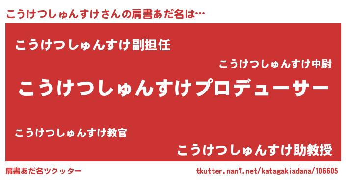| 男性向けラノベタイトル風あだ名 | 『こうけつしゅんすけに滅ぼされるだけの簡単なお仕事です』 |