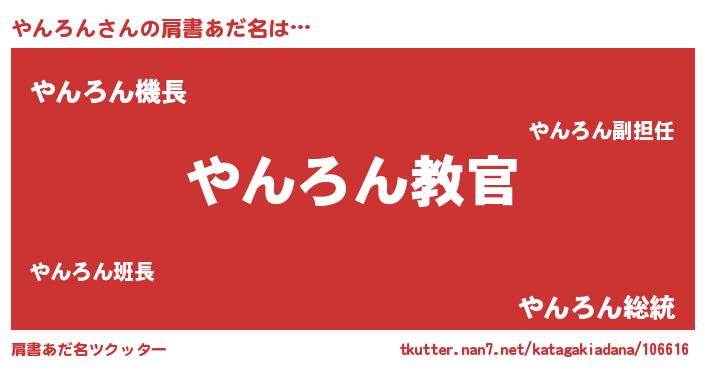 | ヘコむあだ名 | 『やんろん(笑)』『やんぷりん』 |