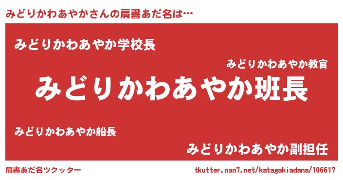 | 意味不明あだ名 | 『とにかく怪しいみどりかわあやか』 |