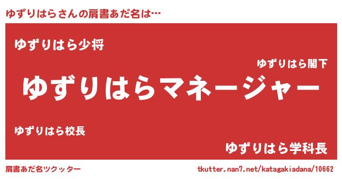 | 男性向けラノベタイトル風あだ名 | 『はたらくゆずりはらさま!』 |