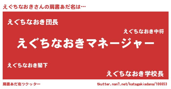 | ヒーロー風カッコイイあだ名 | 『炎刃騎士エグ』『愛の使者えぐちなおき』 |