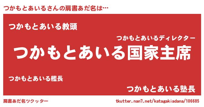 | 男性向けラノベタイトル風あだ名 | 『やはりつかもとあいるの青春ラブコメはまちがっている 』 |