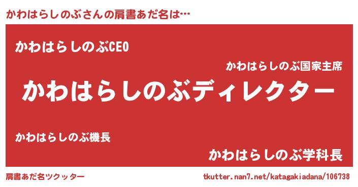 | 男性向けラノベタイトル風あだ名 | 『かわはらしのぶに滅ぼされるだけの簡単なお仕事です』 |