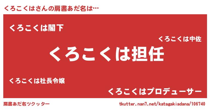 | ヒーロー風カッコイイあだ名 | 『ネオクロコクハ』『スーパークロコクハ』 |