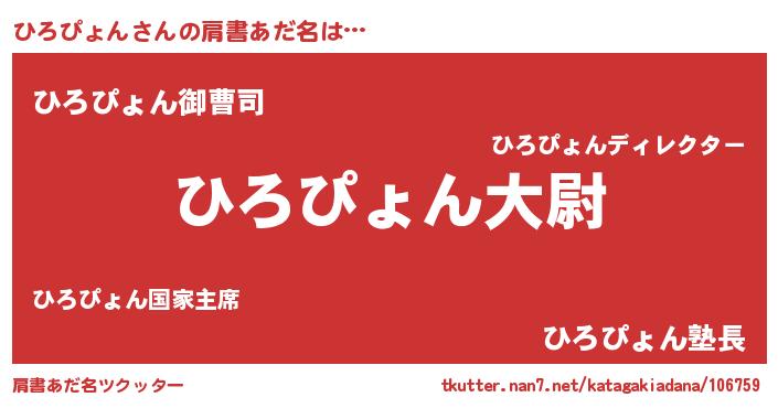 | ヘコむあだ名 | 『ひろにゅー』『ひろぷりん』 |