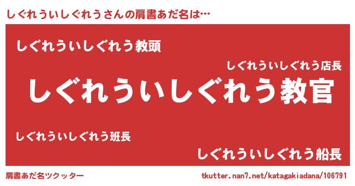 | 欧米人風あだ名 | 『ダレノガレしぐれういしぐれう』 |