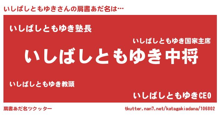 | 男性向けラノベタイトル風あだ名 | 『転生したらいしばしともゆきだった件』 |