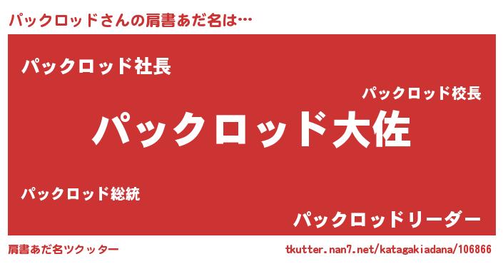 | ヒーロー風カッコイイあだ名 | 『スーパーパックロッド』『天弓騎士パッ』 |