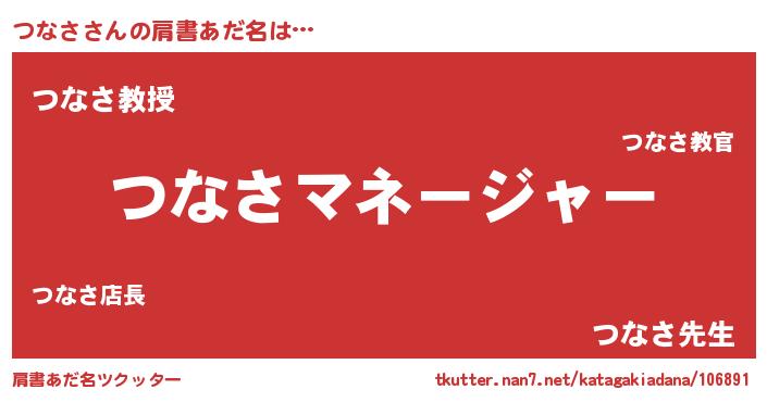 | 欧米人風あだ名 | 『アンジェラ・つなさ』『ダニエルつなさ』 |