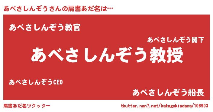 | 男性向けラノベタイトル風あだ名 | 『おまえをオタクにしてやるから、俺をあべさしんぞうにしてくれ! 』 |