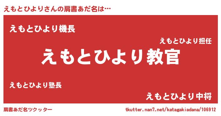 | 意味不明あだ名 | 『住所不定無職えもとひより(9歳)』 |