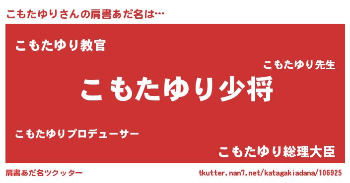 | ヒーロー風カッコイイあだ名 | 『仮面コモダー』『ネオコモタユリ』 |