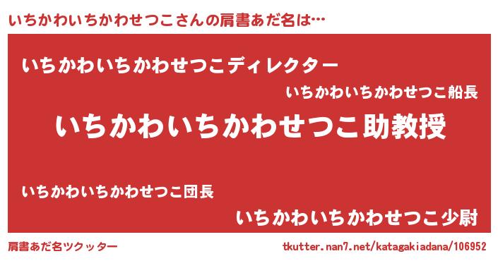 | 男性向けラノベタイトル風あだ名 | 『ノーゲーム・ノーイチカワイチカワセツコ』 |