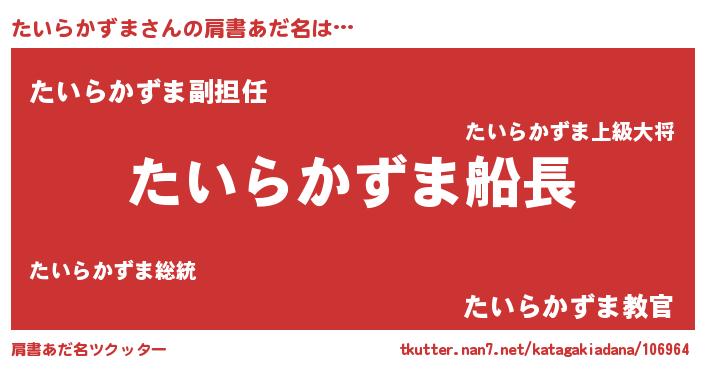 | ヘコむあだ名 | 『たいらかずま(笑)』『たいぷりん』 |
