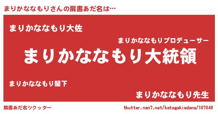 | 女子向けラノベタイトル風あだ名 | 『まりかななもりの婚約者』 |
