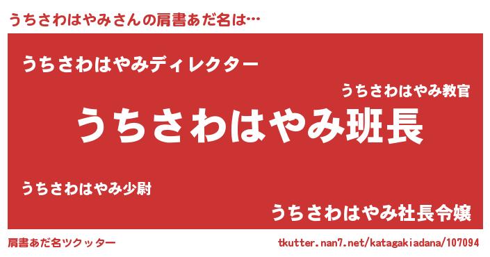 | 胡散臭い通販商品みたいなあだ名 | 『信頼と実績のネックレス…その名も「うちさわはやみ」』 |