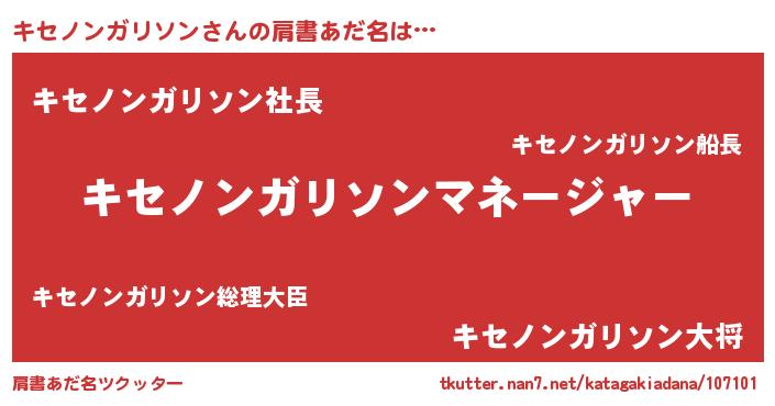 | 男性向けラノベタイトル風あだ名 | 『はたらくキセノンガリソンさま!』 |