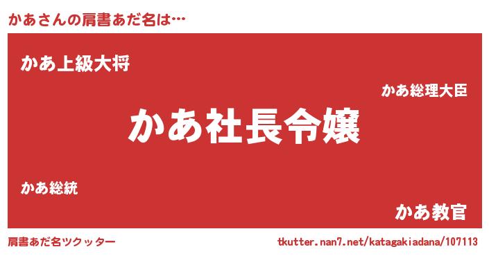 | 胡散臭い通販商品みたいなあだ名 | 『必ず成功する霊験あらたかなお札…その名も「かあ」』 |