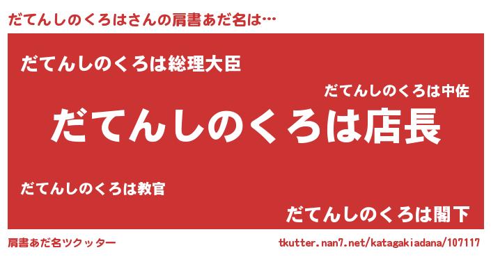 | 男性向けラノベタイトル風あだ名 | 『だてんしのくろはの憂鬱』 |