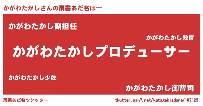 | ヒーロー風カッコイイあだ名 | 『ネオカガワタカシ』『仮面カガダー』 |