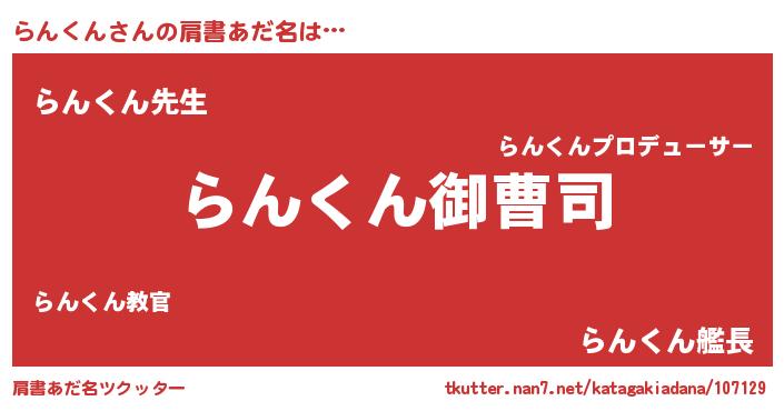 男性向けラノベタイトル風あだ名 | 『らんくんの憂鬱』『魔弾の王とらんくん』 |