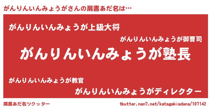 | 男性向けラノベタイトル風あだ名 | 『がんりんいんみょうがの嫁は女の子じゃないと思った?』 |