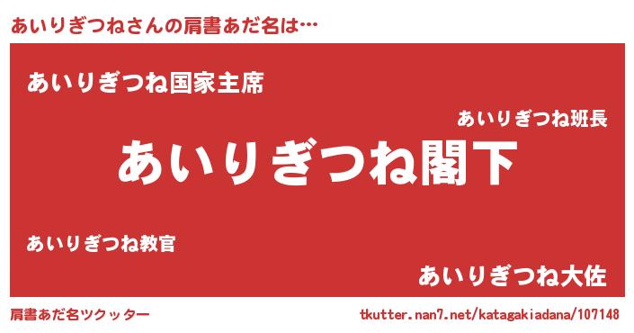 | 意味不明あだ名 | 『自称あいりぎつね』 |